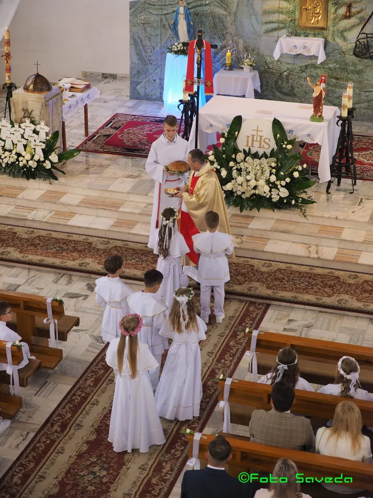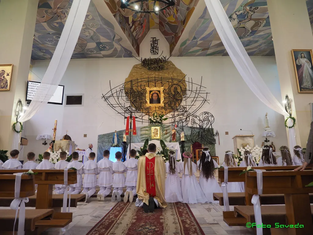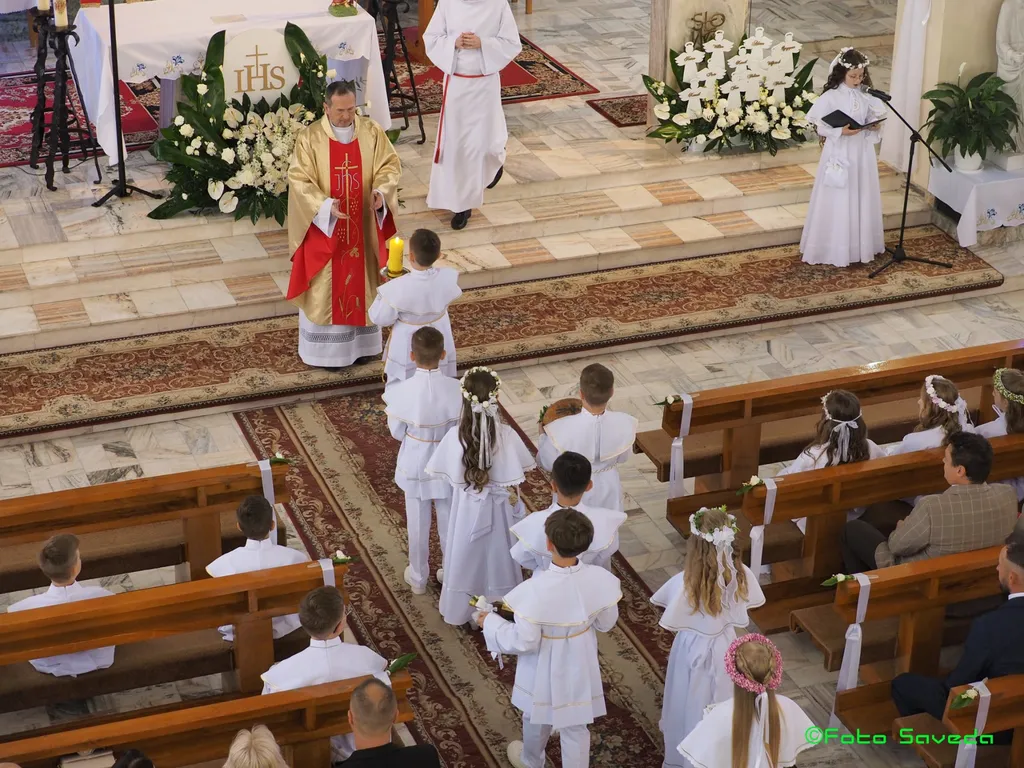 Dwadzieścioro dzieci z klasy 3 przeżywało 4 maja 2025 roku uroczystość I Komunii Świętej Przed nami biały tydzień świętowania z Panem Jezusem Eucharystycznym.